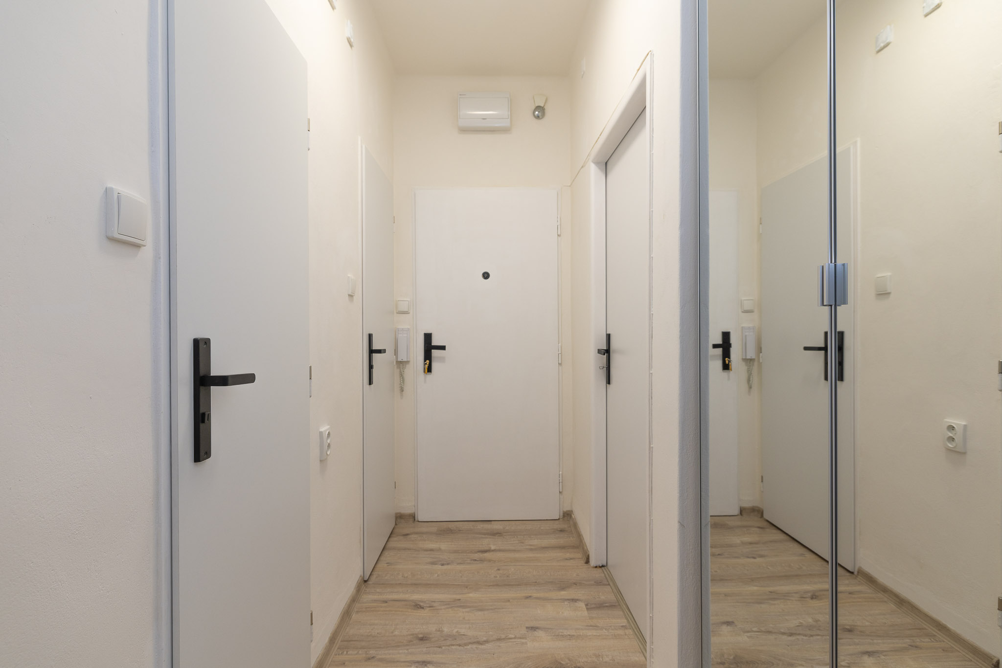 Ačkoliv v bytě nenajdete balkon, k dispozici jsou hned tři sklepní prostory o rozměrech 4,4 m2, 1,2 m2 a 1,3 m2. Zejména ten největší ocení každý kutil nebo ti, kteří potřebují dostatek úložného prostoru.